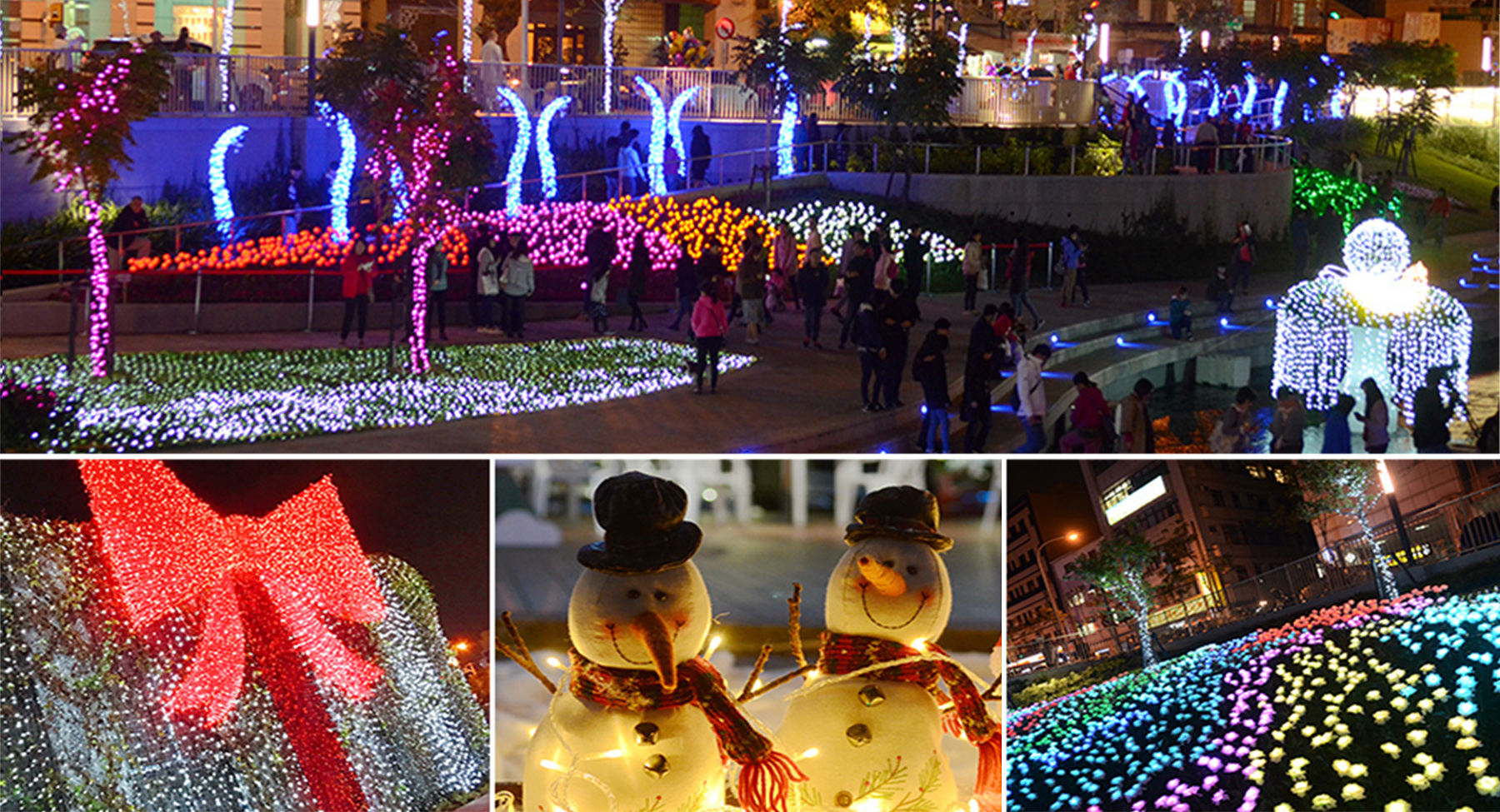 浪漫的玫瑰花燈海、鬱金香花海及水中耶誕樹等,璀璨奪目