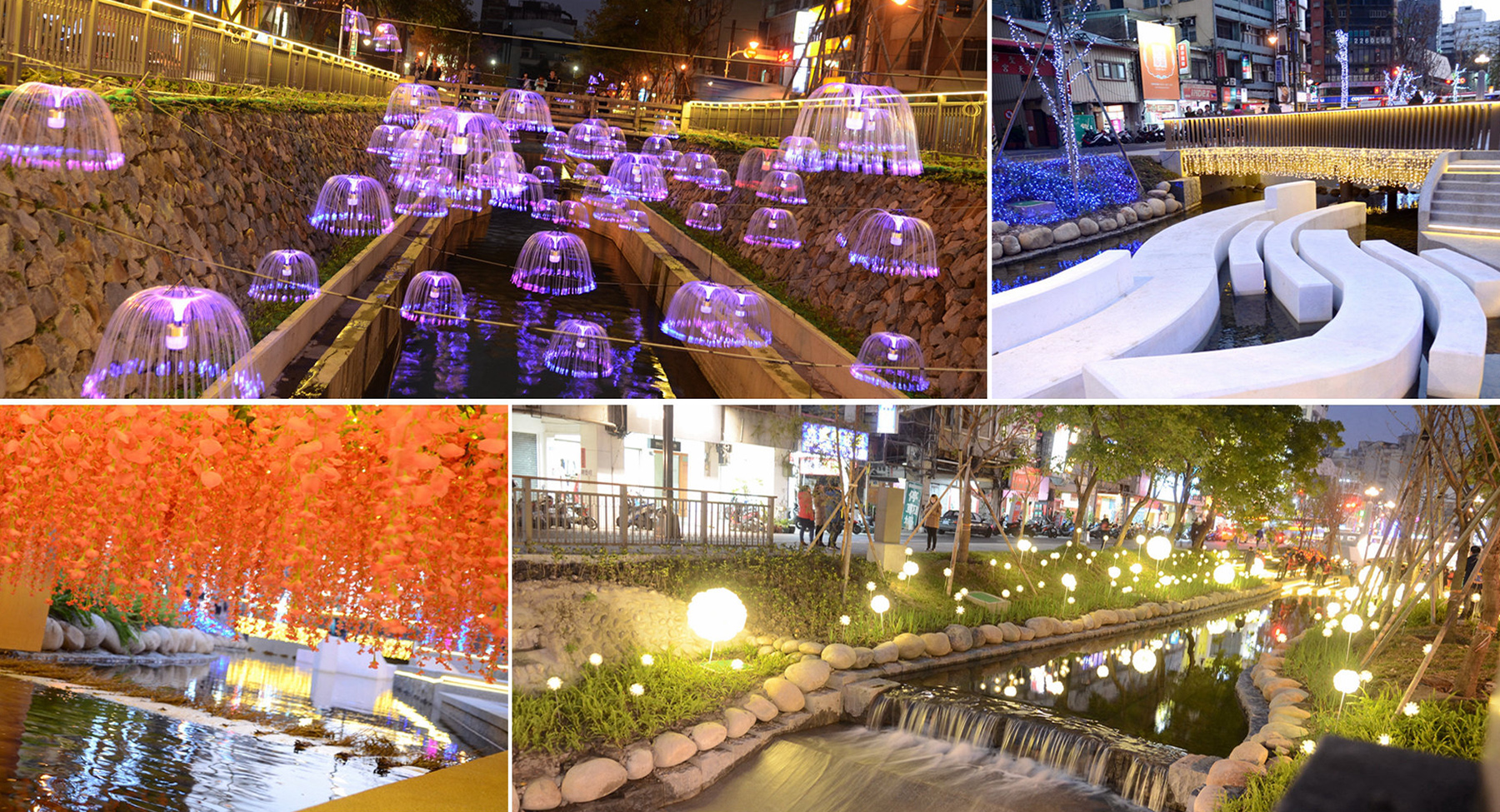 紫藤花海、蒲公英及漂浮水母燈海等,璀璨照亮綠川河岸