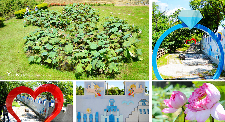 兩顆大大的愛心,就這樣出現在綠地上,隨著荷花的季節而有不同的風貌!