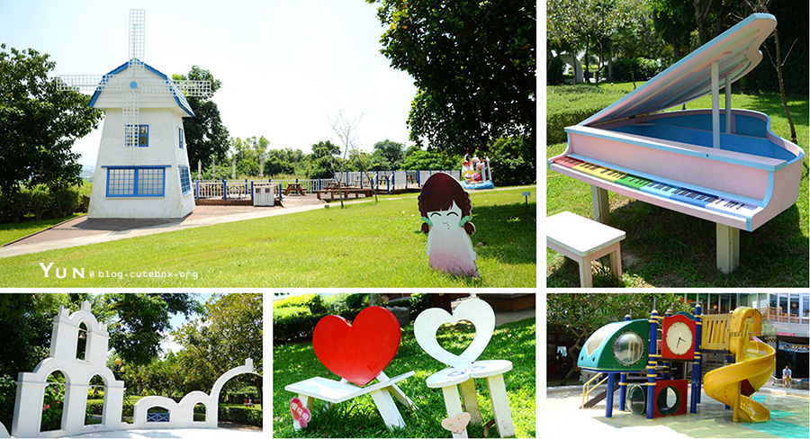 園內設置有浪漫的鋼琴造景及愛情鐘,拍照蠻美的唷