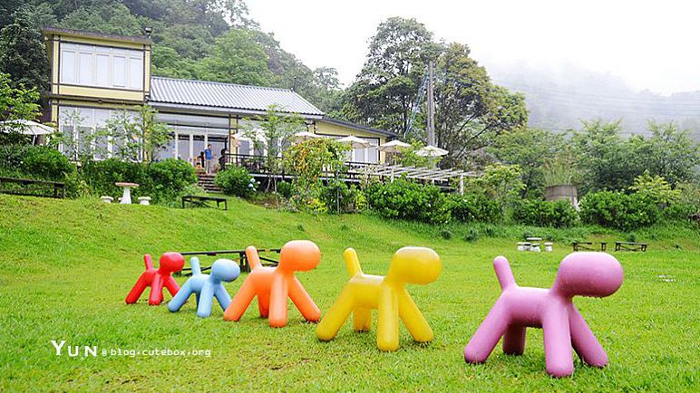 佇立在一片綠意中的黃色小屋,是園區的主餐廳