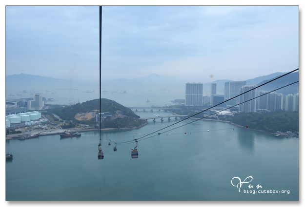 昂坪纜車很特別的是會轉彎,這種感覺很特別!! 沿途的景色更是美不勝收~