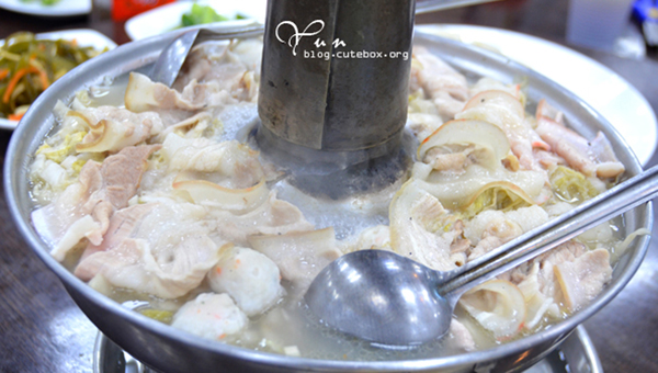 這豬肉是將五花肉切得很薄很薄,煮一下下就熟囉,沾一下特調醬汁,好吃~