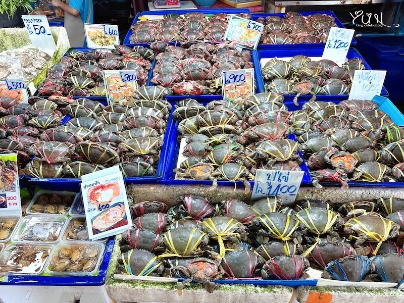 市場採半開放式設計,通風佳,不會悶熱,攤位排列整齊,地面也比想像中乾淨許多,逛起來非常舒服。海鮮種類超豐富,從活跳跳的泰國蝦、鮮螃蟹、花枝、海魚,到生蠔、扇貝,幾乎想得到的都有!價格相當親民,但小撇步是可以稍微比價或討個小優惠,更有逛市場的樂趣。